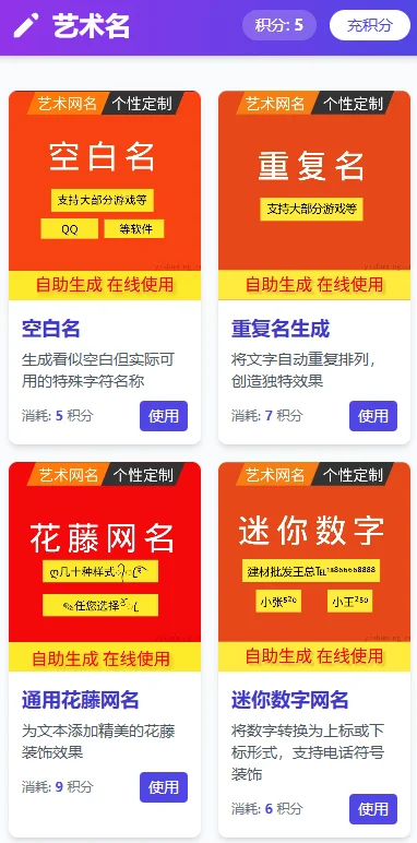 支持:空白名、重复名、花藤名、翅膀名、居中签名、特殊名等